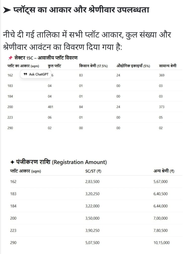 अगर आप अपने परिवार के लिए घर बनाना चाहते हैं या भविष्य के लिए सुरक्षित निवेश की तलाश में हैं, तो सेक्टर 15C की नई योजना आपके लिए बिल्कुल सही विकल्प साबित हो सकती है।